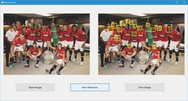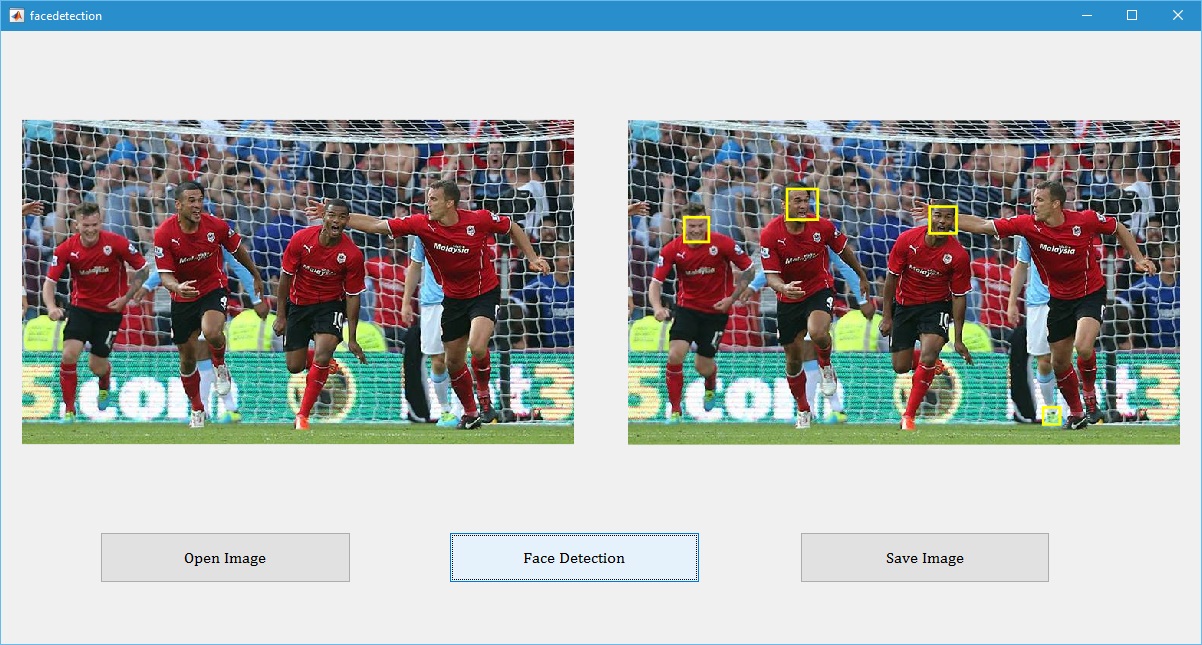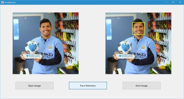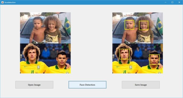 Koding tersebut menggunakan algoritma viola-jones yang dapat diaplikasikan pada wajah yang menghadap ke depan (frontal face) dan dalam posisi tegak. Proses deteksi wajah dapat ditampilkan dalam bentuk GUI melalui pemrograman berikut: