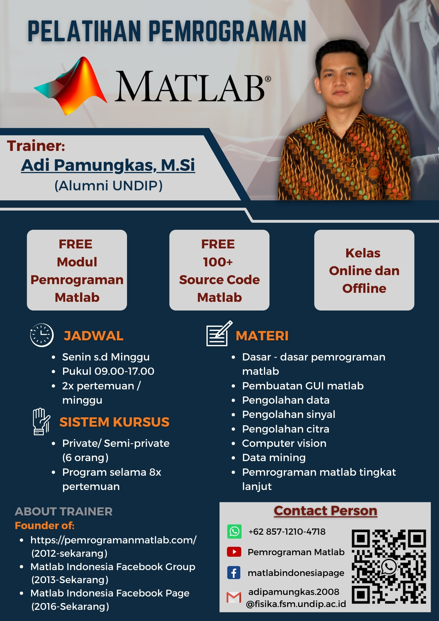 mas @adi pamungkas saya Hartono asal sumatra kebetulan saya kuliah di denpasar dan sekarang sedang ngambil tugas akhir. saya mengambil tugas akhir sistem absensi dan dosen pembimbing saya menyarankan menggunakan matlab untuk sistem pengenalan wajah tapi berhubung saya sebelum nya belum pernah menggunakan program matlab saya mendapatkan kebingungan. saya benar-benar belum memahami sistem apa aja yang ada pada matlab. tapi alhamdulilah saya membaca postingan mas @adi pamungkas saya sedikit paham apa itu matlab.