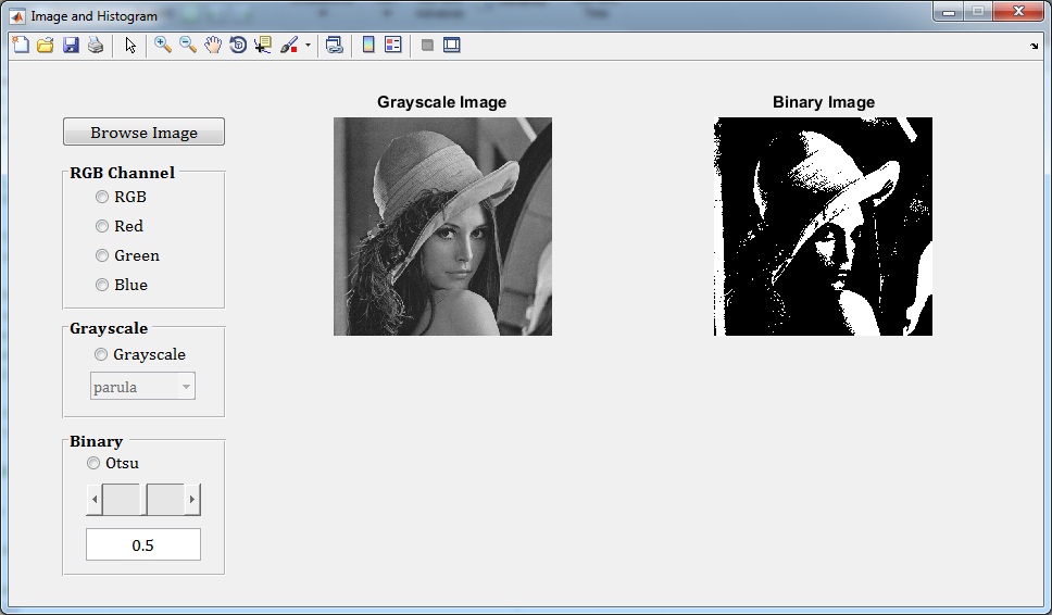 Posted on August 10, 2015, in Pengenalan Matlab, Pengolahan Citra and tagged cara membuat aplikasi gui matlab, cara membuat aplikasi histogram citra matlab, cara membuat histogram citra menggunakan matlab, cara menampilkan histogram citra matlab, citra biner, citra biner matlab, citra dan histogram, citra digital adalah, citra grayscale matlab, citra RGB, citra rgb matlab, contoh coding histogram matlab, dasar-dasar pengolahan citra digital, gui matlab, histogram citra adalah, histogram citra biner matlab, histogram citra grayscale matlab, histogram citra matlab, histogram citra rgb matlab, menampilkan histogram matlab, metode otsu matlab, operasi citra digital matlab, thresholding citra matlab. Bookmark the permalink. 5 Comments.