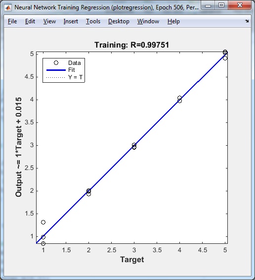 Nilai koefisien korelasi sebesar 0.99751 menunjukkan bahwa akurasi hasil proses pelatihan sangat baik.