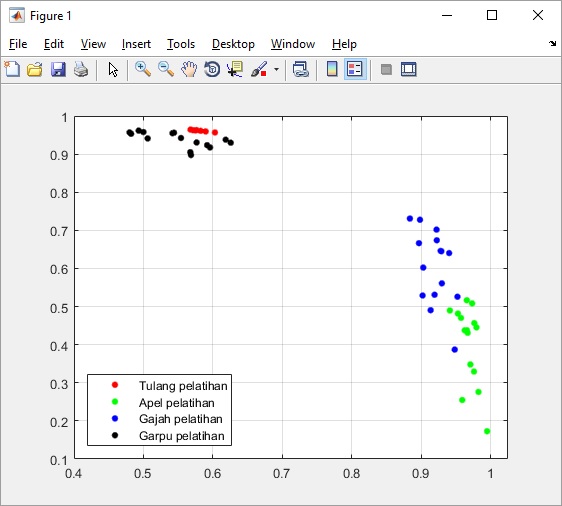 legend('Tulang pelatihan','Apel pelatihan','Gajah pelatihan','Garpu pelatihan',...