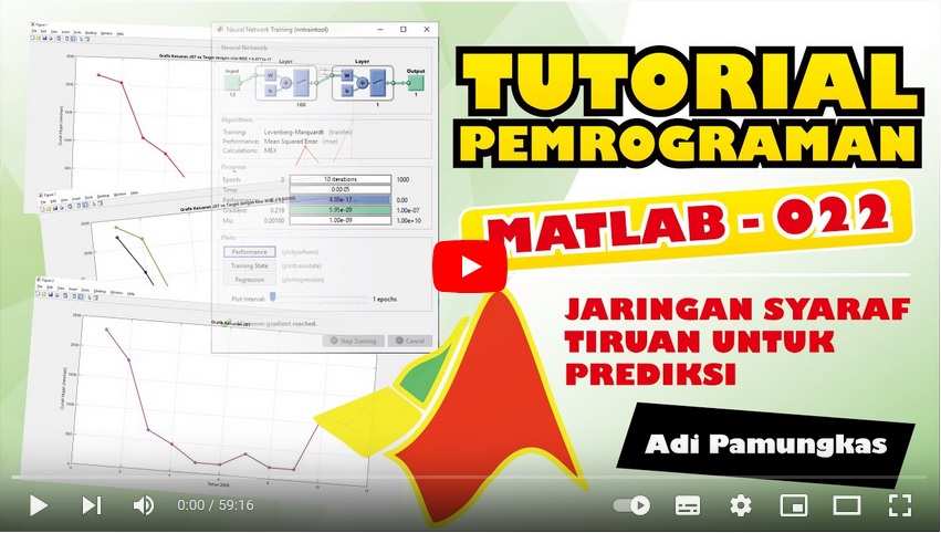 Penjelasan detail mengenai prediksi menggunakan jaringan syaraf tiruan bisa dilihat pada video tutorial berikut ini: