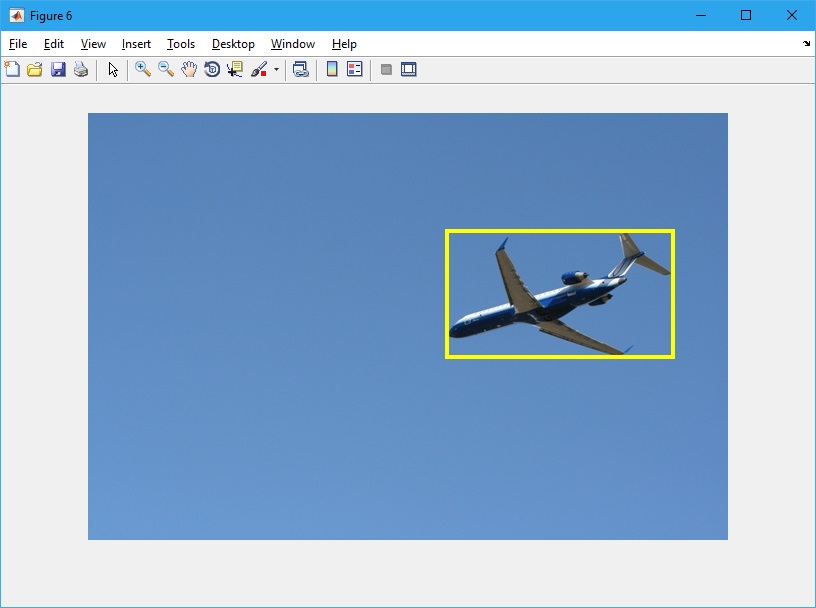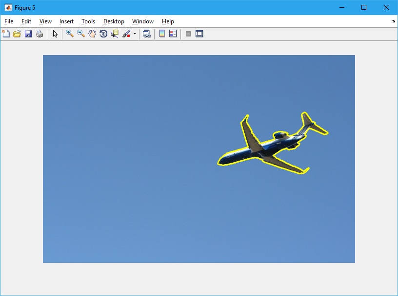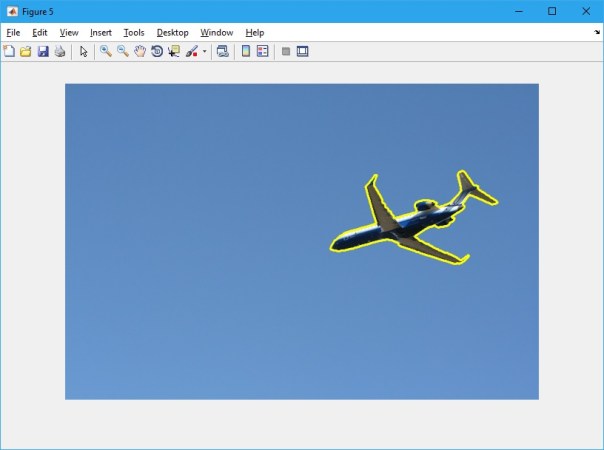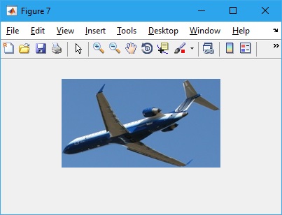 1. Membaca dan menampilkan citra asli. Pada contoh ini citra yang digunakan adalah citra ‘airplane.jpg’ di mana objek yang dikehendaki adalah berupa pesawat, sedangkan background adalah berupa langit.