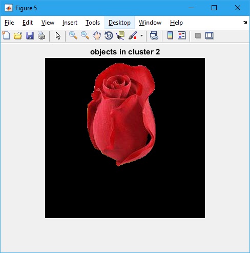 figure,imshow(segmented_images{k}), title(strcat(['objects in cluster ',num2str(k)]));