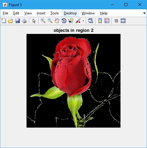 Berikut ini merupakan contoh aplikasi pemrograman matlab untuk melakukan segmentasi citra dengan menggunakan dua buah metode yang berbeda. Metode yang pertama yaitu multi thresholding, sedangkan metode yang kedua adalah k-means clustering. Segmentasi dilakukan terhadap citra rose.jpg yang ditunjukkan pada gambar di bawah ini.