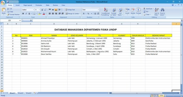 Database seluruh mahasiswa terintegrasi dengan software Microsoft Office Excel 2007 seperti ditunjukkan pada gambar berikut: