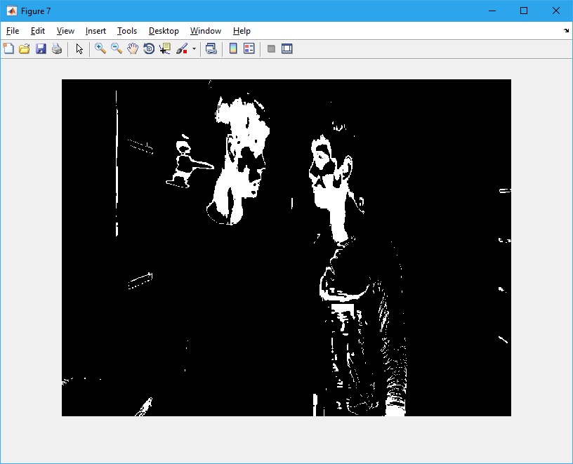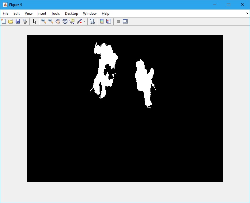 5. Melakukan segmentasi warna kulit pada ruang warna YCbCr berdasarkan nilai Y (20 s.d 60), Cb (117 s.d 127) dan Cr (133 s.d 153) sehingga diperoleh citra biner