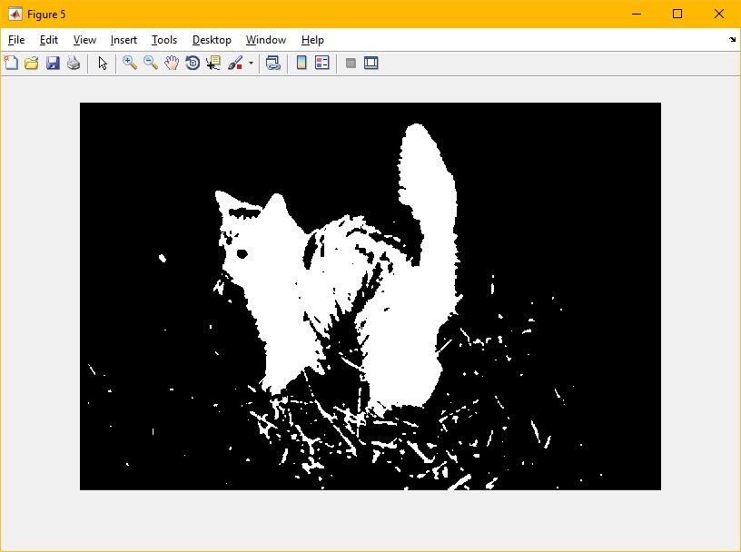 4. Memilih region kluster yang memiliki luas paling kecil. Hal tersebut dilakukan agar diperoleh region object yaitu hewan kucing