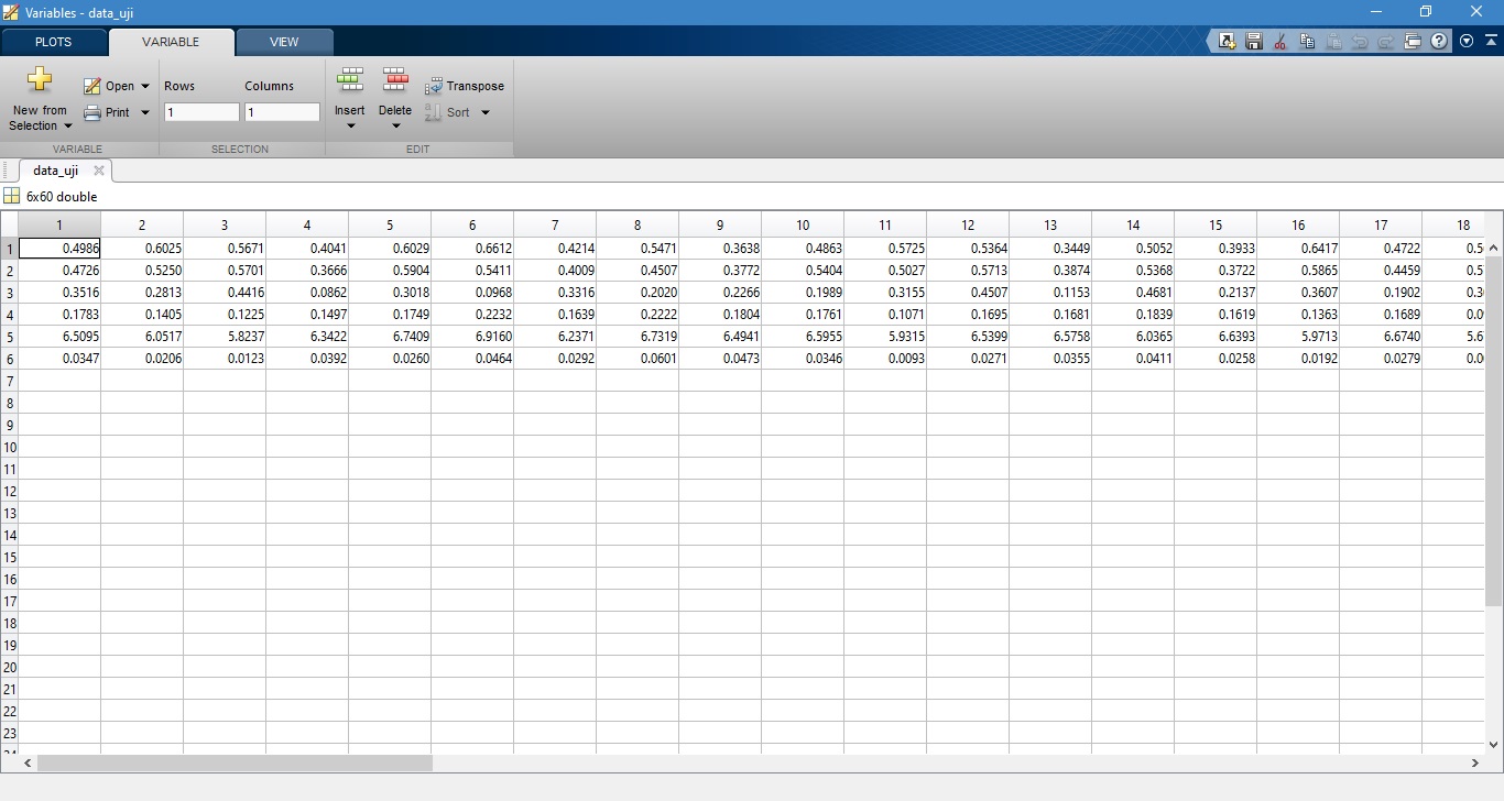 mohon maaf mas menanya lagi bagaimana cara menampilkan tabel variable data uji ya mas ?