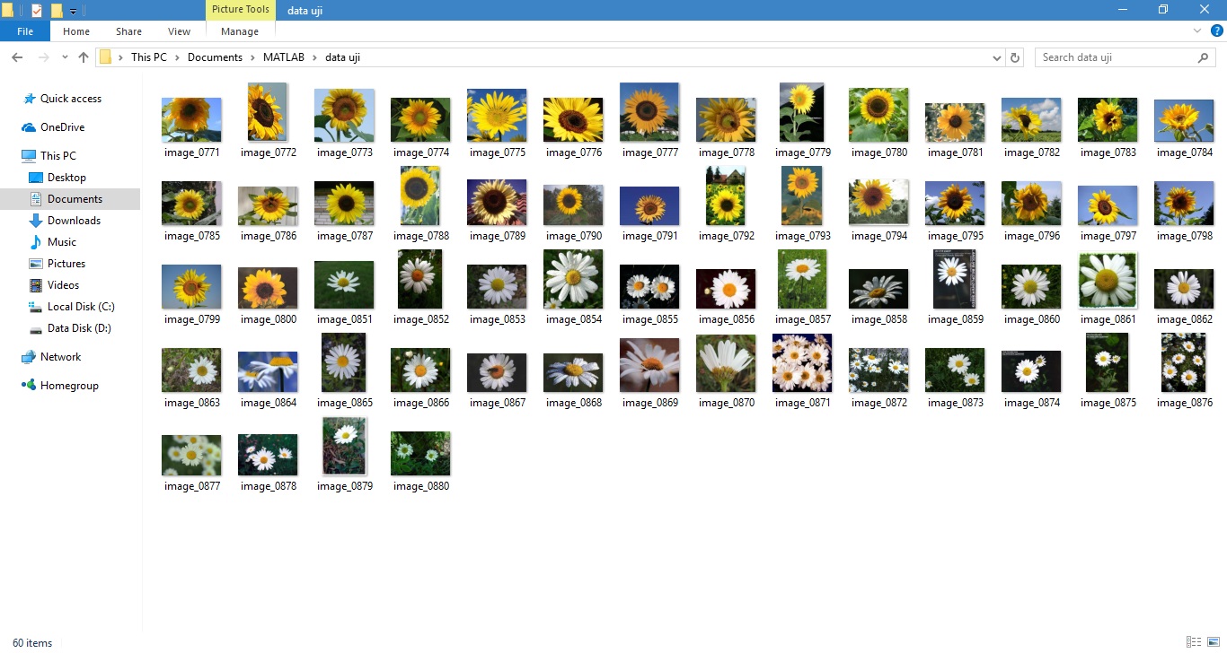 Contoh citra bunga yang digunakan ditunjukkan pada gambar berikut.
