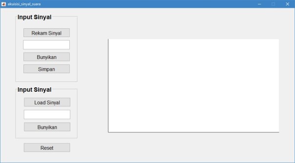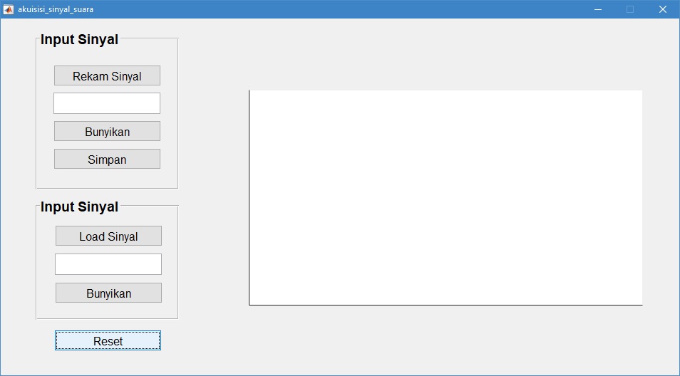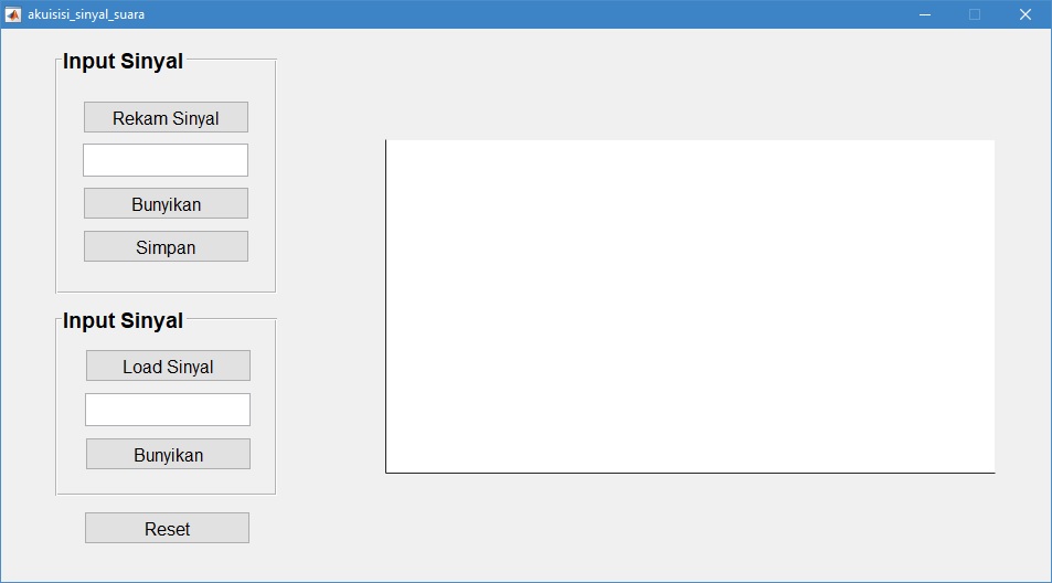 Berikut ini merupakan contoh aplikasi pemrograman GUI MATLAB untuk melakukan akuisisi sinyal suara. Proses akuisisi dilakukan dengan cara merekam suara menggunakan mikrofon yang ada pada komputer atau laptop.