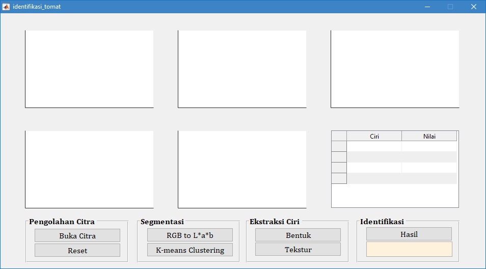 3. Tahapan identifikasi dilakukan menggunakan GUI dengan tampilan sebagai berikut: