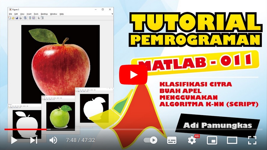 Penerapan algoritma k-nearest neighbors (k-nn) untuk klasifikasi citra buah apel dapat dilihat pada video tutorial berikut ini: