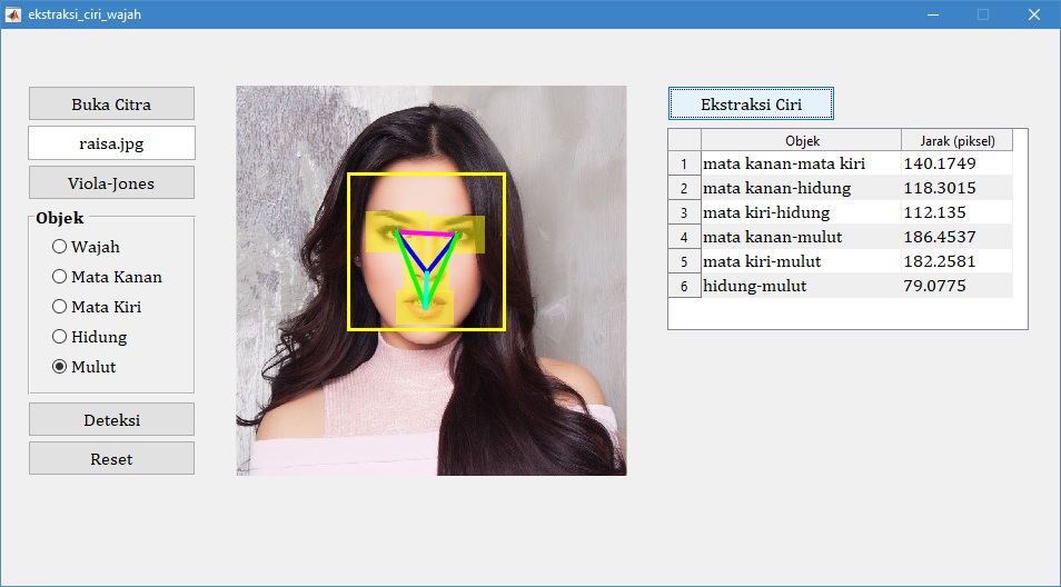 Tahapan Face Recognition (Pengenalan Wajah) antara lain adalah face detection (deteksi wajah), feature extraction (ekstraksi ciri), dan recognition (pengenalan). Berikut ini merupakan contoh aplikasi deteksi wajah dan ekstraksi ciri wajah menggunakan bahasa pemrograman MATLAB. Objek yang dideteksi antara lain adalah wajah, mata (kanan dan kiri), hidung, dan mulut. Sedangkan ciri yang diekstrak adalah jarak antara … Continue reading Ekstraksi Ciri Wajah Menggunakan Algoritma Viola-Jones
