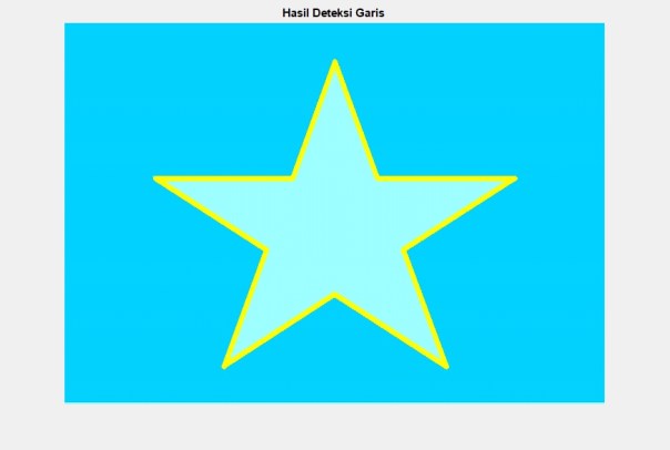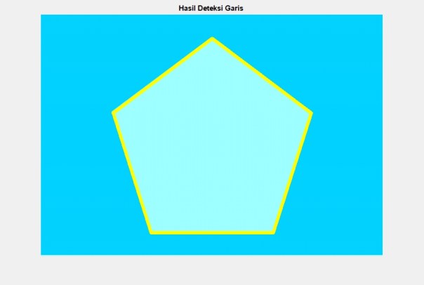Proses identifikasi bentuk pada citra digital salah satunya dapat dilakukan dengan cara melakukan deteksi terhadap jumlah garis dan titik sudut penyusun objek dalam citra. Berikut ini merupakan contoh aplikasi pemrograman matlab mengenai deteksi garis dan titik sudut menggunakan transformasi Hough.