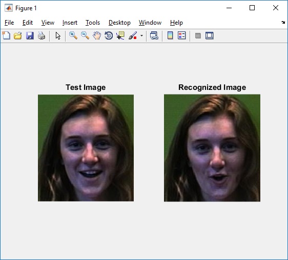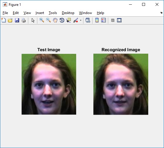 %%%%% extracting PCA features of the train image %%%%% train_target = zeros(total_images,1); num_img = 15; num_face = 10; for i = 1 : num_face train_target((i-1)*num_img+1:i*num_img) = i; end class_index = zeros(total_images,1); for n = 1 : total_images str = fullfile(data_train_path, filenames(n).name); test_image = imread(str); [r,c] = size(test_image); temp = reshape(test_image',r*c,1); % creating (MxN)x1 image vector from the 2D image temp = double(temp)-m; % mean subtracted vector projtestimg = eigenfaces'*temp; % projection of test image onto the facespace %%%%% calculating and comparing the euclidian distance of all projected trained images from the projected test image %%%%% euclide_dist = [ ]; for i=1 : size(eigenfaces,2) temp = (norm(projtestimg-projectimg(:,i)))^2; euclide_dist = [euclide_dist temp]; end [euclide_dist_min,recognized_index] = min(euclide_dist); class_index(n) = train_target(recognized_index); end [~,b] = find(class_index==train_target); train_accuracy = sum(b)/total_images*100