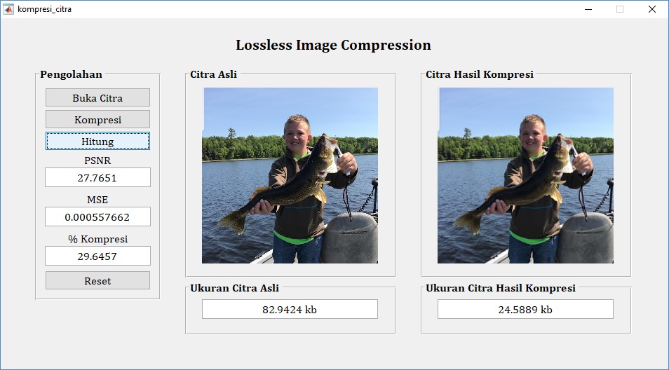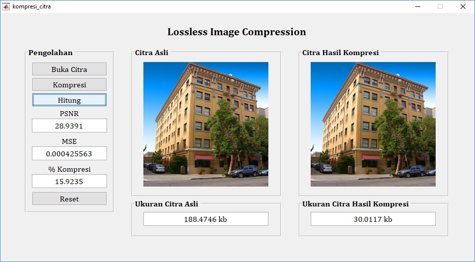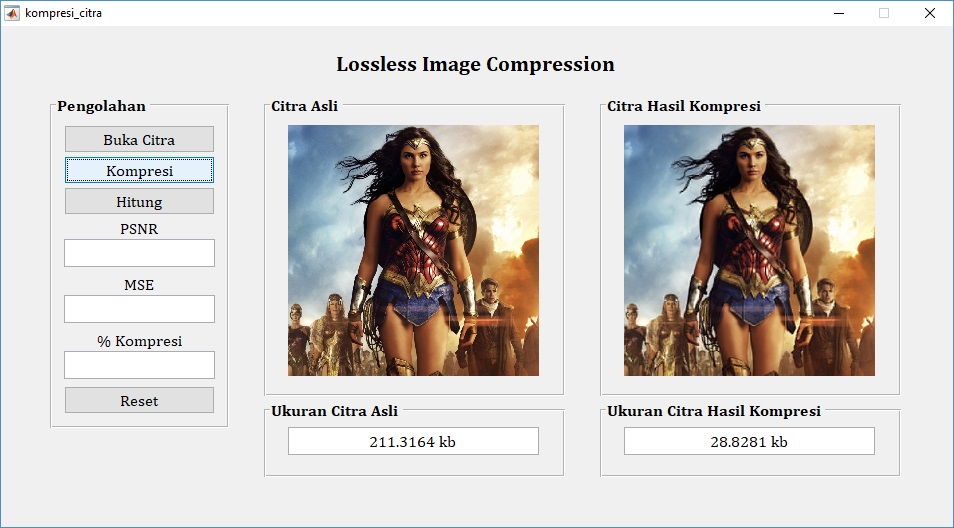 Pemrograman citra digital di atas merupakan salah satu contoh penerapan metode kompresi lossless dengan meminimalisir data informasi citra yang hilang.
