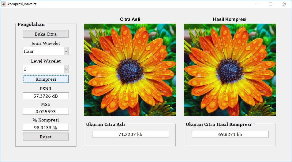 2. Melakukan kompresi citra menggunakan transformasi wavelet