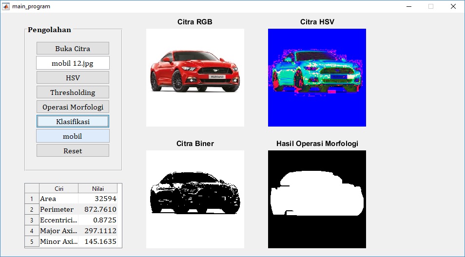 Algoritma dan pemrograman matlab untuk klasifikasi jenis kendaraan adalah sebagai berikut: