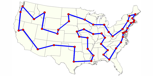 Berikut ini merupakan contoh penerapan algoritma genetika untuk optimasi kombinasi dalam kasus Travelling Salesman Problem. Optimasi dilakukan untuk mencari jalur/rute terpendek yang menghubungkan antara dua titik lokasi. Langkah-langkah pemrogramannya adalah sebagai berikut: -read more->