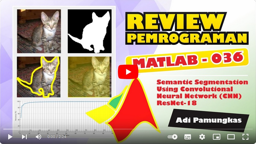 Contoh penerapan segmentasi semantik menggunakan Convolutional Neural Network (CNN) dapat dilihat pada video berikut ini: segmentasi semantik