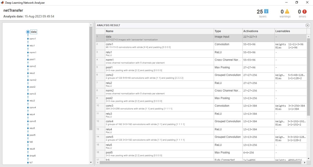 - Lapisan Konvolusi dan ReLU: AlexNet menggunakan lapisan konvolusi untuk mengekstraksi fitur-fitur penting dari gambar input. Setelah konvolusi, lapisan aktivasi ReLU diterapkan untuk memperkenalkan non-linearitas ke dalam model. Fungsi ReLU (f(x) = max(0, x)) menggantikan nilai negatif dengan nol, yang membantu dalam pelatihan yang lebih cepat dan mengatasi masalah pelunakan gradien (vanishing gradient problem).