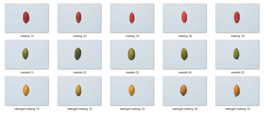 Buah melinjo (Gnetum gnemon) adalah buah yang banyak ditemukan di berbagai negara tropis. Buah ini memiliki beberapa tingkat kematangan yang berbeda, yang dapat dilihat dari perubahan warna kulitnya. Buah melinjo biasanya mengalami tiga tingkat kematangan: matang (warna merah), mentah (warna hijau), dan setengah matang (warna kuning). Identifikasi tingkat kematangan buah melinjo secara manual dapat menjadi tugas yang memakan waktu dan cenderung subjektif. Oleh karena itu, dalam artikel ini, akan dibahas pengembangan sistem otomatis untuk mengidentifikasi tingkat kematangan buah melinjo menggunakan algoritma jaringan saraf tiruan (JST) dengan metode backpropagation.