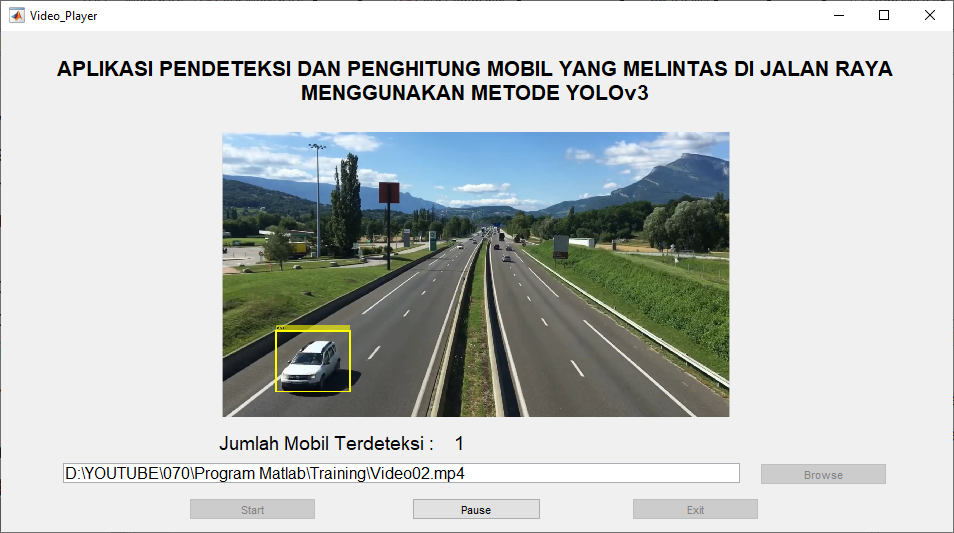 Berikut ini pemrograman MATLAB untuk sistem deteksi dan penghitungan kendaraan di jalan tol menggunakan metode YOLOv3 dalam MATLAB: