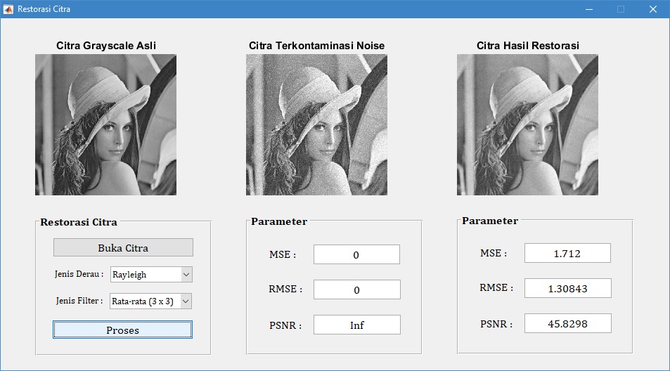 Semakin rendah nilai MSE, semakin baik tingkat restorasi citra.