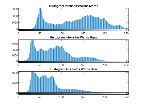 - Puncak Paling Tinggi: Ini adalah intensitas dominan dalam citra. Puncak ini menunjukkan seberapa sering intensitas tersebut muncul.