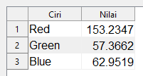 Setelah citra berhasil di-segmentasi, kita dapat mengekstraksi ciri warna dari buah melinjo. Ciri ini didasarkan pada komponen warna merah (R), hijau (G), dan biru (B) dari citra. Salah satu ciri yang dapat digunakan adalah nilai rata-rata dari setiap komponen warna ini di dalam wilayah buah melinjo yang telah di-segmentasi.