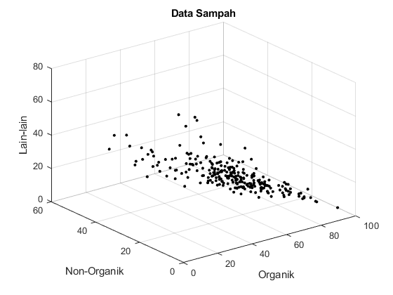 Data sampah yang kami gunakan dalam analisis ini mencakup 287 kota di seluruh Indonesia. Setiap data kota terdiri dari tiga atribut utama yang merupakan persentase komposisi sampah: