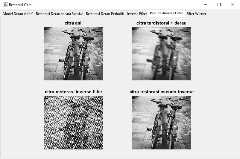 - Restorasi Citra: Teknik restorasi citra digunakan untuk memperbaiki citra yang rusak atau kabur karena faktor-faktor seperti pergeseran fokus, gerakan, atau degradasi lensa.
