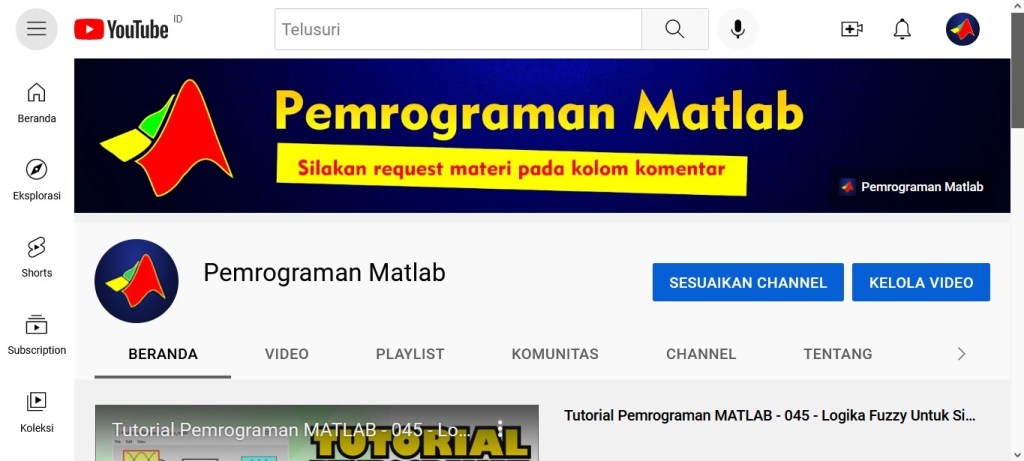 Dukung kami dengan cara subscribe channel Youtube Pemrograman Matlab agar selalu aktif dan rutin membagikan video tutorial Pemrograman Matlab secara gratis, Terima Kasih πππ