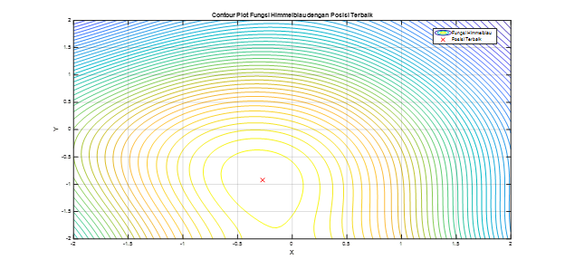 legend('Fungsi Himmelblau', 'Posisi Terbaik', 'Location', 'best');