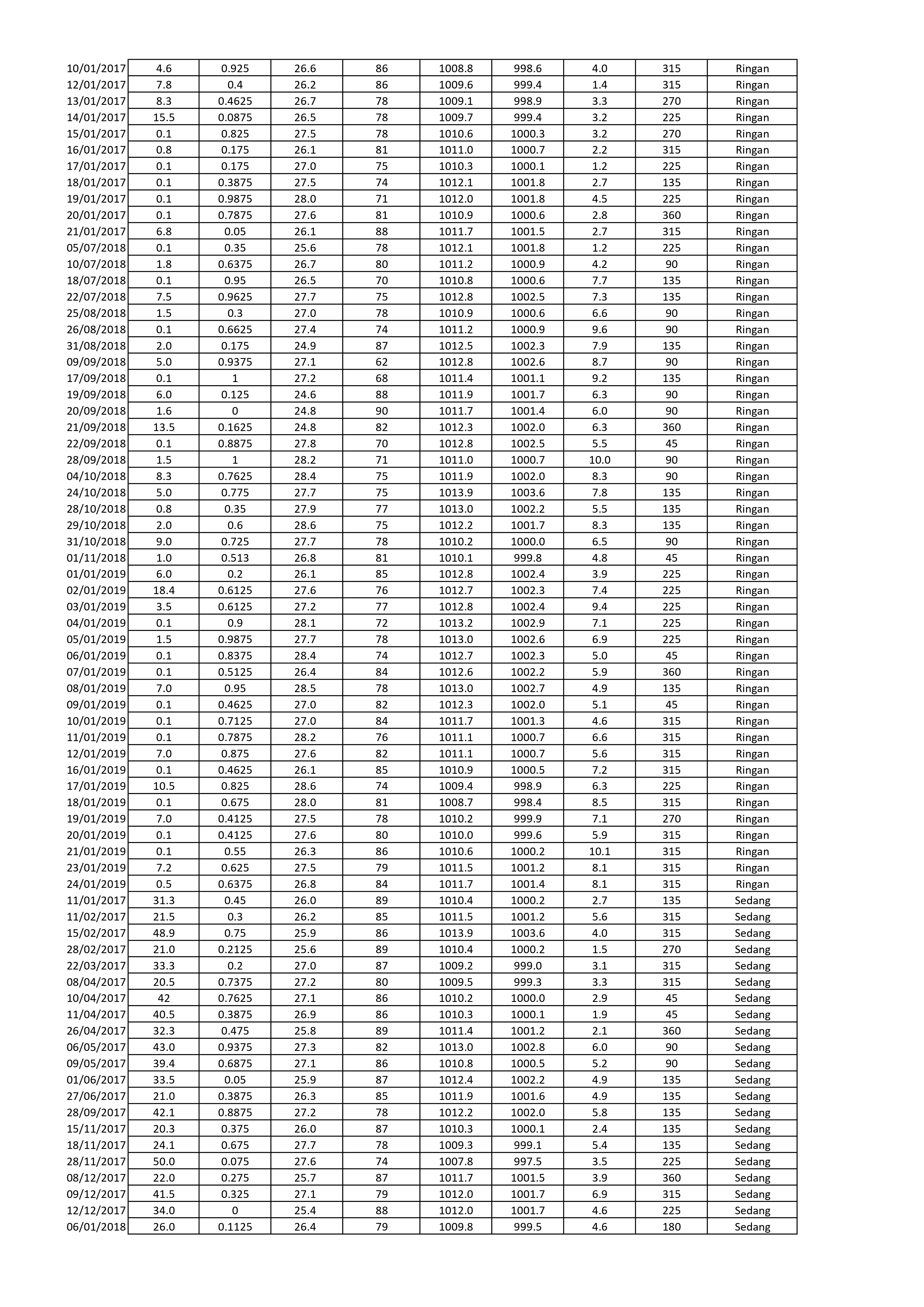 Untuk membuat model prediksi ini, kita akan menggunakan data cuaca dari tahun 2017 hingga 2019. Data terdiri dari: