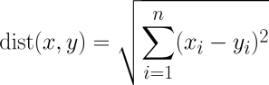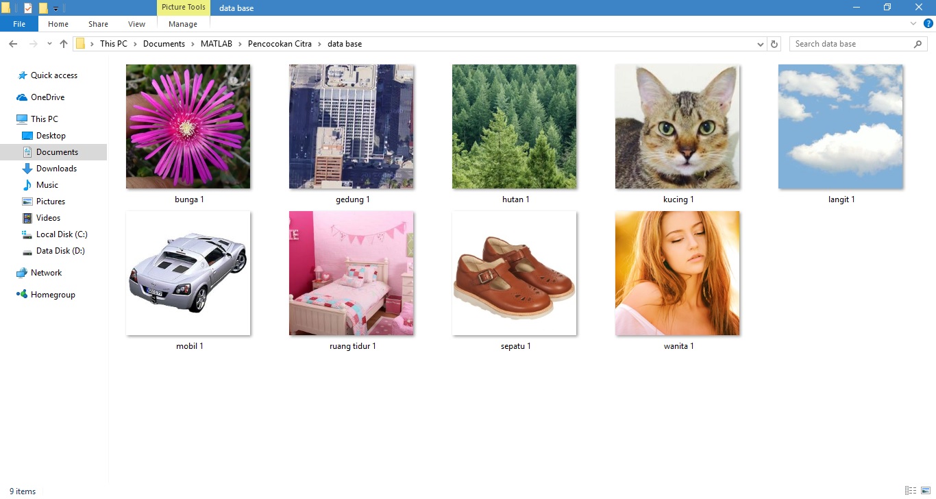 Pencocokan citra (image matching) merupakan salah satu bagian dari pengolahan citra yang dilakukan untuk mencari citra lain yang sejenis atau memiliki kemiripan. Salah satu parameter yang merepresentasikan tingkat kemiripan antara dua buah citra adalah jarak euclidean. Semakin kecil jarak euclidean antara dua buah citra maka akan semakin mirip kedua citra tersebut. Persamaan untuk menghitung jarak euclidean adalah sebagai berikut: