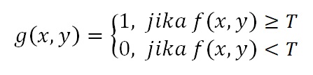 Persamaan yang digunakan untuk mengkonversi nilai piksel citra grayscale menjadi biner pada metode thresholding adalah: