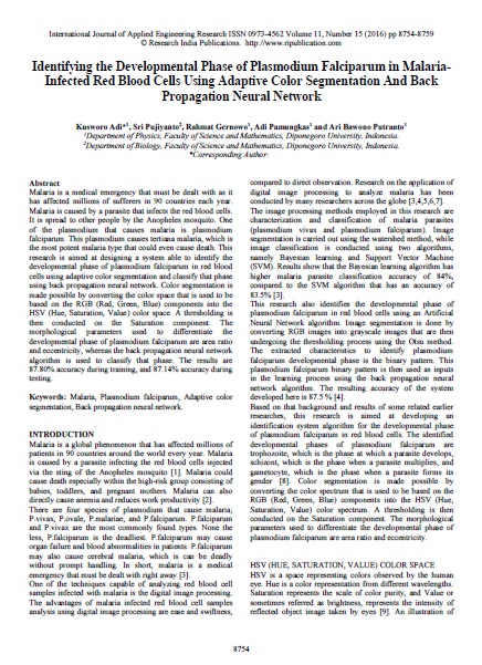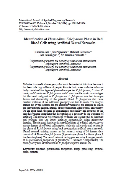 6. Identification of Plasmodium Falciparum Phase in Red Blood Cells using Artificial Neural Networks