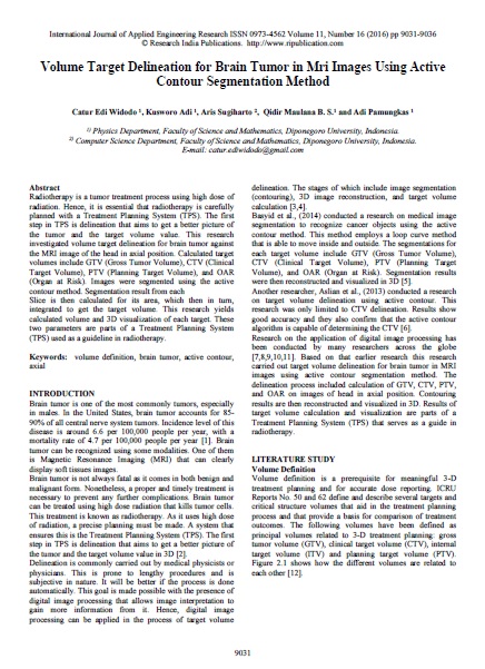 9. Volume Target Delineation for Brain Tumor in MRI Images Using Active Contour Segmentation Method
