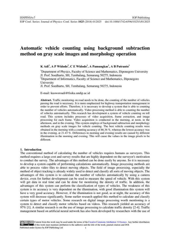 Penelitian mengenai pengolahan citra digital telah banyak dilakukan oleh para peneliti di dunia. Berbagai metode dikembangkan dengan tujuan agar meningkatkan kualitas citra sehingga dapat lebih mudah diinterpretasi dan juga dapat dianalisis secara objektif. Berikut ini merupakan beberapa jurnal penelitian mengenai pengolahan citra digital, dengan Adi Pamungkas sebagai salah satu penulis: