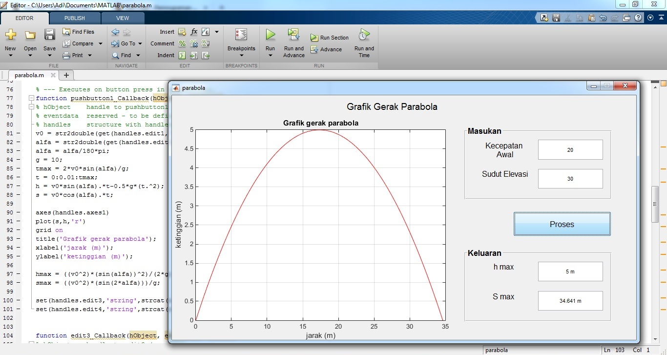 Posted on August 16, 2017. Bookmark the permalink. Comments Off on tampilan guide matlab gerak parabola.